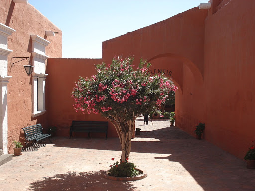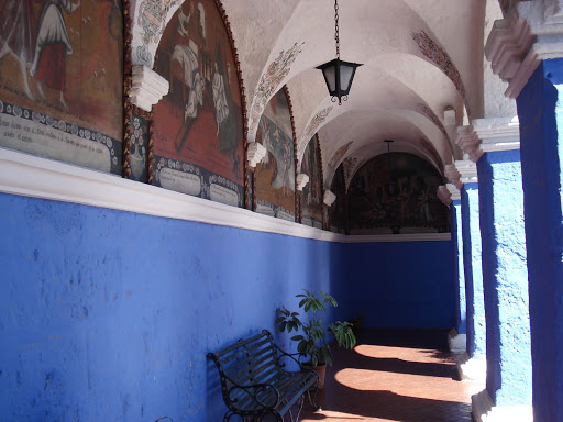 今天我們回到Arequipa,來個一日DIY day tour,在這個歷史悠久的城市裡,我們時間有限,當然就和不用功學生臨時抱佛腳一樣--「挑重點」!於是我們相中了位在市區中心不遠的Santa Catalina Monastery(聖卡塔林那修道院)。這一個建於1580年西班牙殖民時代的修道院無論歷史、規模都來頭不小!超過20000平方公尺的修道院內部就像是一個小城市,於是更被人稱為「The city in the city」。而這個城市一直與世隔絕,內部的修女並不與外人接觸,平時利用一些自製織物、麵包透過一個迴旋的木製旋轉機關與外界換取其他糧食以及生活必需品。從創始開始,一直對外封閉了391年,直到西元1970年才對外開放參觀!其中,最多容納一度到450人生活在這個「城」裡!而歷史悠久、保存完整的修道院也被名列世界遺產的名單當中!