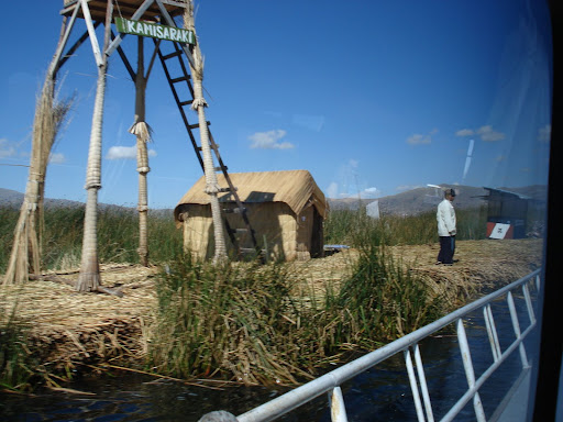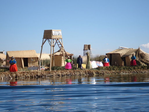 Titikaka湖,的的喀喀湖,位在秘魯和玻利維亞的邊境,海平面3800多公尺高的湖泊,是全世界可以行船的最高湖泊!除了是南美洲最大的湖泊之外,也是世界上最高的商業通航湖泊唷!今天的團是從Puno出發,經過一系列的遊覽之後,在Isla Armatani待上一晚。我們首先來到的是Uros人工島嶼,這個些零星散落的小島們,底層是枯乾的蘆葦草根,上面是用中空漂浮的蘆葦草交錯搭成的,再利用木棍、石頭與繩子加以固定!這些蘆葦草還可以捆成蘆葦船!島上的景觀十分別緻有趣,一切純天然的建築住著純樸的人們!這些浮島據說一共有14個,其中還有「首都」、「學校」呢!居住在島上是多麼困苦以及不方便的事,要是沒有特別的原因,誰會願意住在荒蕪的湖泊上呢?這些印第安民族之所以會到島上生活,是由於印加帝國崛起時,印第安土著們被迫搬遷島上以求棲身之地。原本,他們只是建造蘆葦船,吃喝拉撒睡都在船上,之後家族擴大,聰明地在湖上自建浮島,沒想到現在成為觀光聖地了!